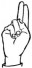 На ћирилици написано КЛАУДИЈЕ КОВАНЏИЋ састоји се из 16 слова [?]. Исписано ћириличном једноручном азбуком за глувонеме: